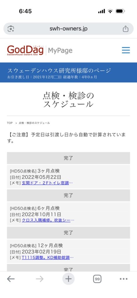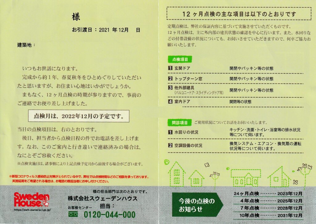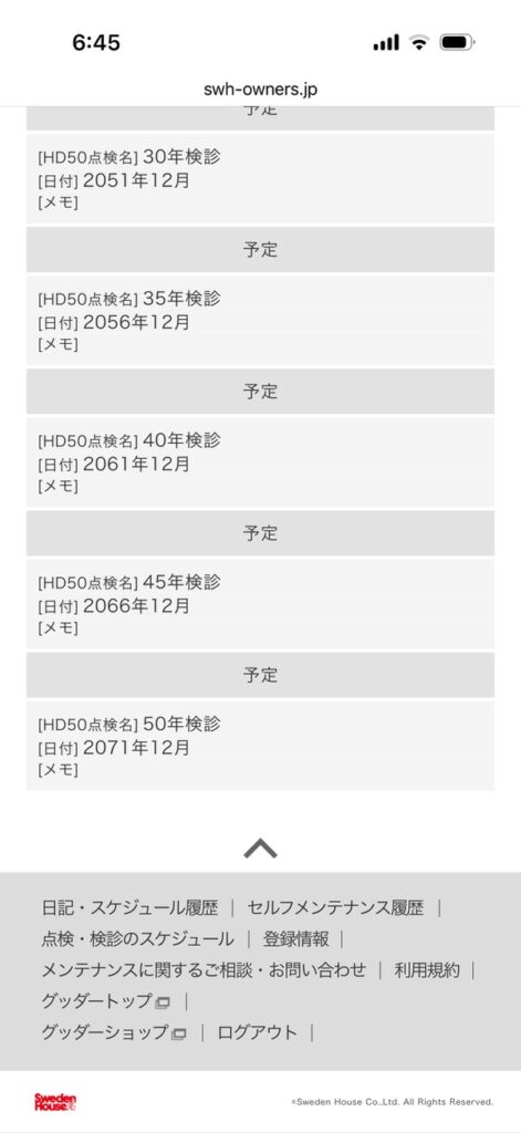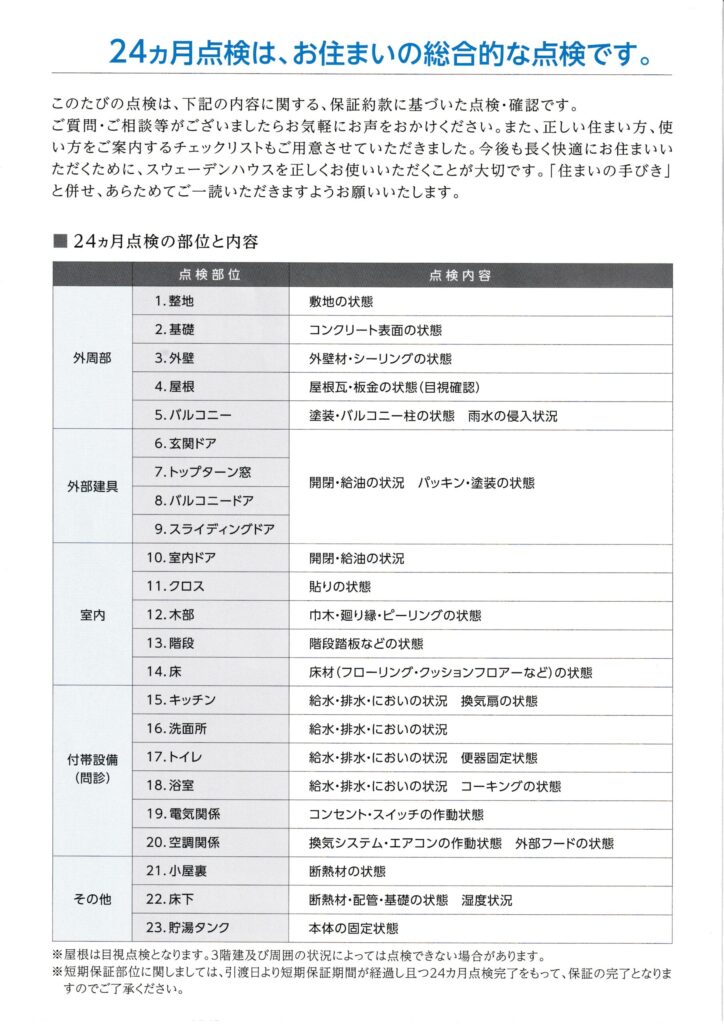 が、スウェーデンハウスの定期点検は、