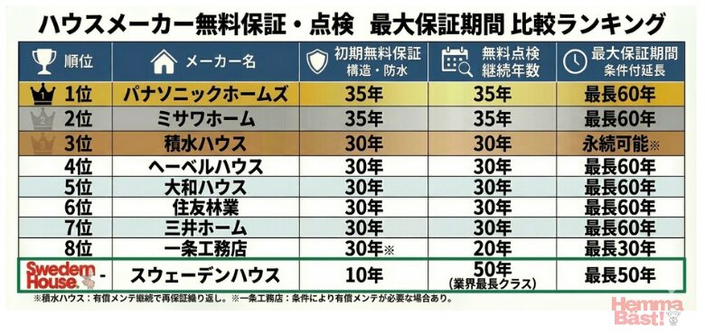 大手ハウスメーカーの保証を、かんたんに比較