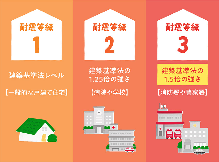 耐震等級には3つの区分があり「耐震等級3」が最高ランクの性能です。