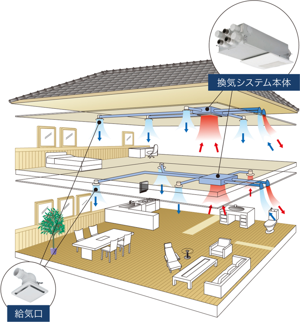 高気密・高断熱の家で快適・健康に過ごしていただくためには計画換気が重要です。