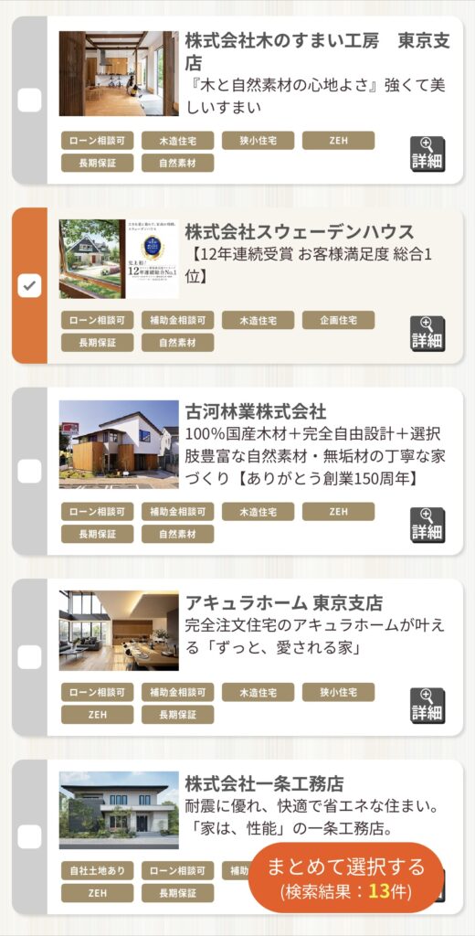 STEP4:比較したいハウスメーカーを選択する