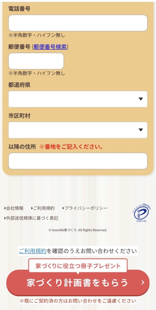 「電話番号」まで入力すると、「郵便番号」以下が表示されます。